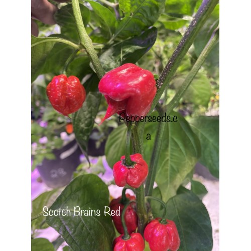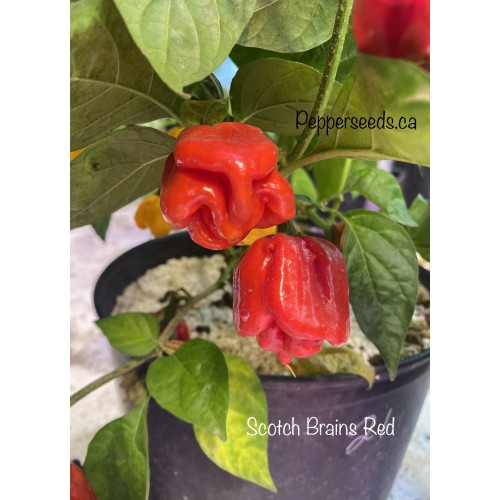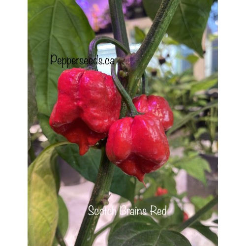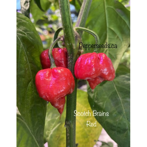This is the red variant of Scotch Brains with red pods that look very cool. Plants grow grow in good condition and should be started indoor and grown under plastic here in Canada for the start of planting and Possibly a week or two at the end of the season